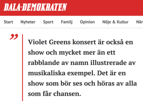 Förutom en härlig spelning inför en entusiastisk publik och fint mottagande av Borlänge jazzklubb fick vi dessutom en fin recension i Dala-Demokraten♥ Hela recensionen kan du läsa på Dala-Demokraten.