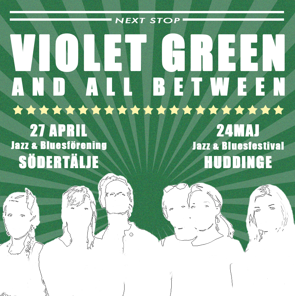 Violet Green and all between består av 6 musiker som samarbetat i olika sammanhang under 25 år. Nu turnerar de tillsammans i Sverige och Norge (på jazz- och bluesklubbar, kulturföreningar, kyrkor, skolor, pubar och teatrar) och delar med sig av sin rosade show "A tribute to women pioneers in blues and rock´n roll". Den röda tråden är kvinnornas blueshistoria, där pionjärer inom blues, gospel, soul, rythm & blues och rock presenteras.