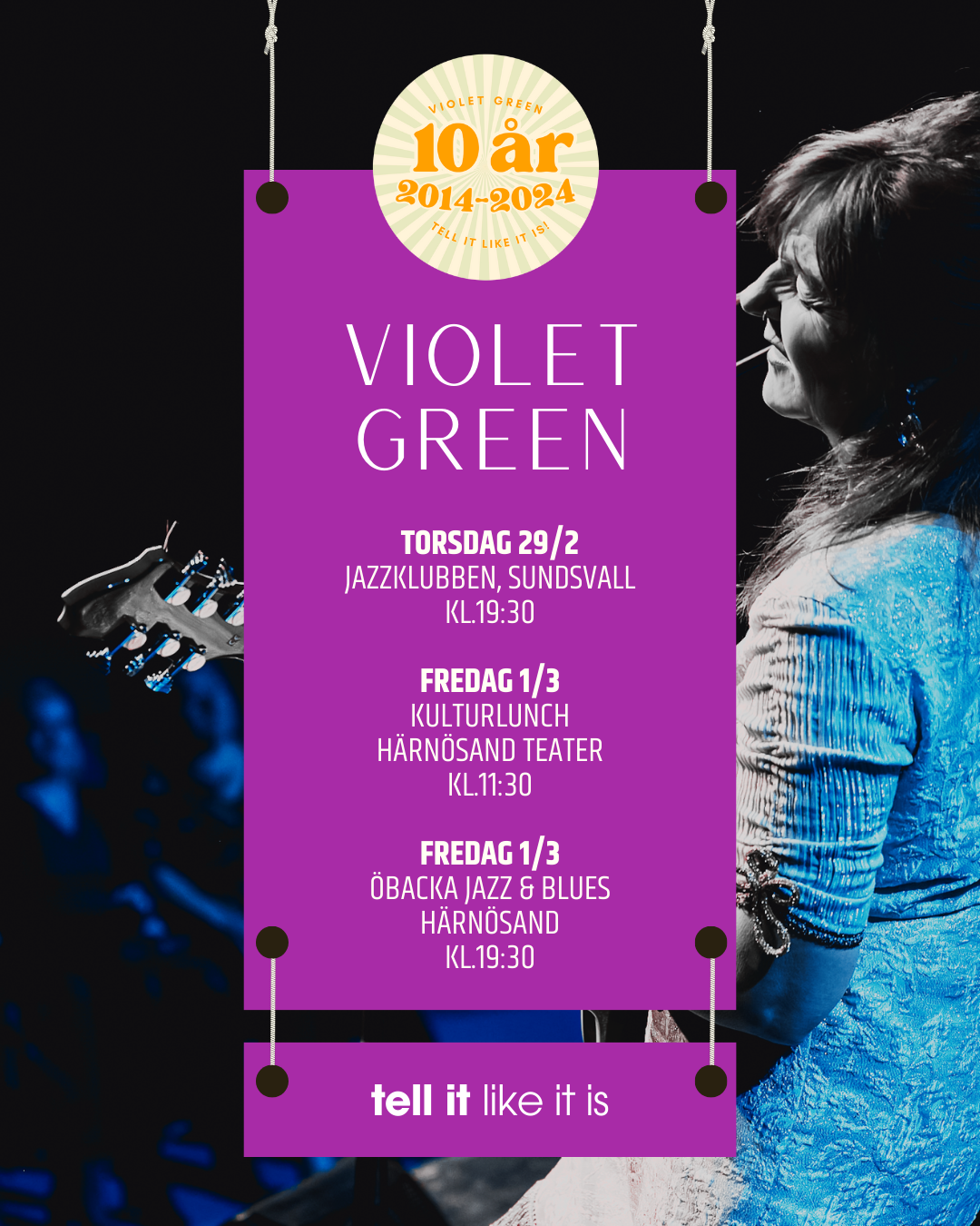 Alla spelningar detta år känns också lite extra roliga eftersom Violet Green firar 10 år!!! Vi startade 2014, några månader senare satte vi upp vår första föreställning som sålde slut i ett nafs. Vi har sedan dess turnerat runt omkring i vårt vackra avlånga land samt Norge. Vi har träffat så många underbara arrangörer och fantastisk publik, som verkligen förgyllt och fortfarande förgyller våra spelningar🥳 Tusen tack♥♥♥